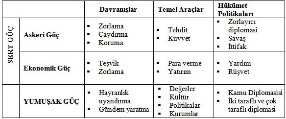 Tablo 2: Sert Güç-Yumuşak Güç Davranış Spektrumu[13]