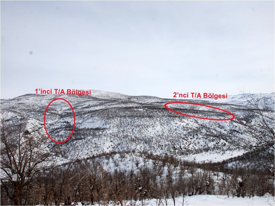 O en rahat dediğim yerin durumuna haritadan bakalım.1881 rakımlı tepenin kuzeyine geçersek Şırnak’a geçeriz. Şırnak tarafından gelirseniz yine bu bölgeye gelmeniz lazım. Vadinin durumunu görüyorsunuz. Şu an meşe ağaçlarının yapraklarının olmadığı dönem. Güney yamaçları olduğu için karlar erimiş. Su an bütün kuzey yamaçlarında kar var, güneyde erimiş durumda.