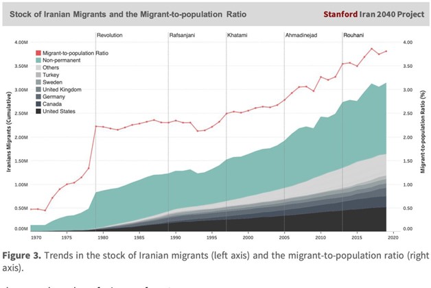 [3] P. Azadi, M. Mirramezani, M. B. Mesgaran, Migration and Brain Drain from Iran, Working Paper 9, Stanford Iran 2040 Project, Stanford University, April 2020, 8-9.