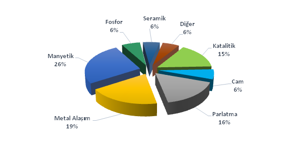 2010’da nadir topraklara olan küresel talep 136.000 metrik ton (mt)/yıl iken, küresel üretim 133.600 mt/yıl olarak gerçekleşmiştir. Küresel nadir toprak talebinin 2016’da en az 160.000 mt/yıl olması beklenmektedir.[11]