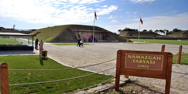 Kilit Bahir Kalesi’nin hemen yanında, boğazın kenarında yer alan Namazgâh Tabyasının yapımına, 1860'lı yıllarda Sultan Abdülaziz döneminde başlanmış, 1892 yılında tamamlanmıştır. Tam karşısındaki Aziziye Tabyası ise boğaz savunmasını güçlendirmek amacıyla yapılmıştır.