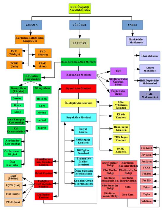 [10] Atilla SANDIKLI, KCK Terör Örgütünün Yapısı ve Faaliyetleri, Bilgesam http://www.bilgesam.org/tr/index.php?option=com_content&view=article&id=992:kck-teroer-oerguetuenuen-yaps-ve-faaliyetleri&catid=122:analizler-guvenlik&Itemid=147, (26.02.2014, çevrimiçi). KCK Şeması, http://medya.zaman.com.tr/2009/04/14/yapilanma2.jpg, (03.04.2014, çevrimiçi); 2012/123 sayılı KCK İddianamesi, s.71’den yararlanılarak tarafımdan oluşturulmuştur